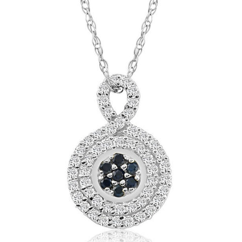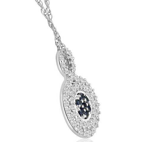 1/4Ct Sapphire & Natural Diamond Pendant Necklace in White or Yellow Gold 1/2"
