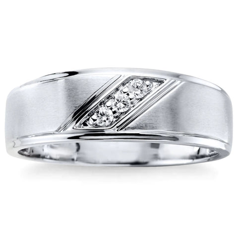 1/16Ct TW Three Stone Men's Brushed Diamond Lab Grown Wedding Ring in 14k Gold