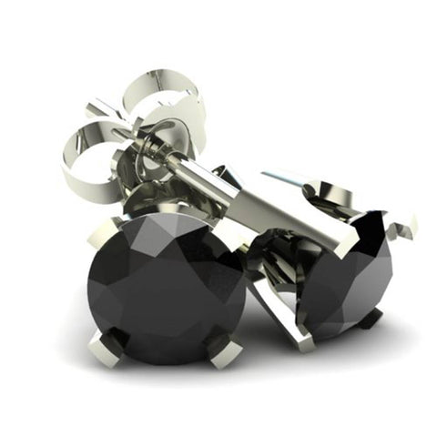 1.50Ct Round Brilliant Cut Heat Treated Black Diamond Stud Earrings in 14K Gold Classic Setting