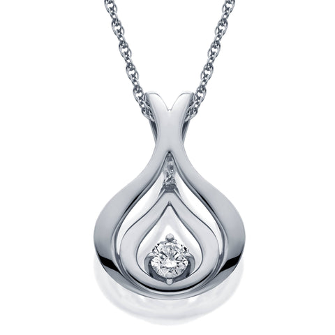 Round Cut Diamond Solitaire Pendant & Chain White Gold 5/8" Tall