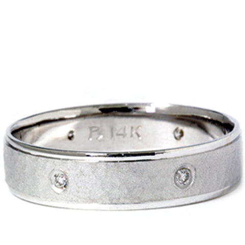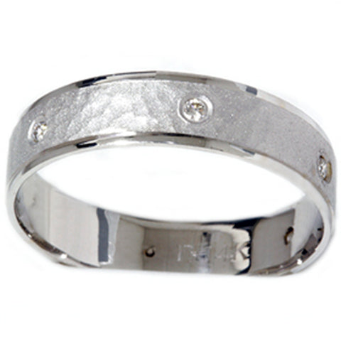 Diamond Hammered Comfort Fit Wedding Ring 14K White Gold Band 5mm 1/5 Ct