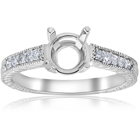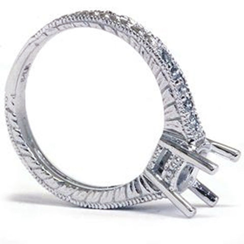 1/5ct Hand Engraved Diamond Engagement Ring Setting 14k White Gold Fits 6-6.5mm