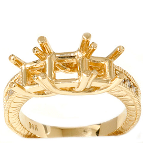1/5ct Vintage Three Stone Princess Cut Diamond Setting