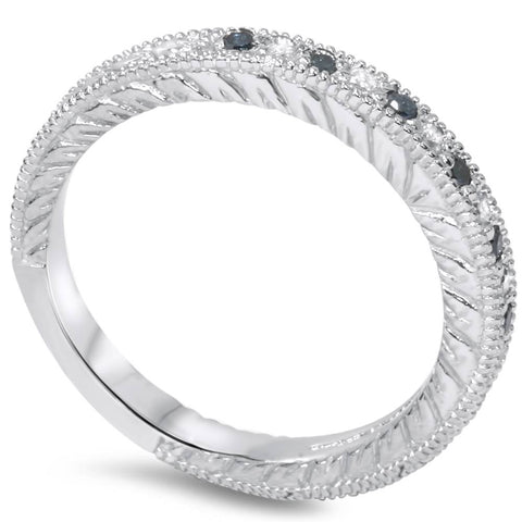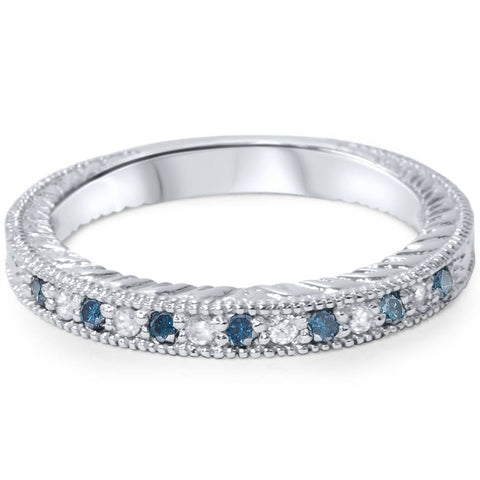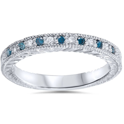 1/6ct Blue & White Diamond Vintage Wedding Ring 14K White Gold