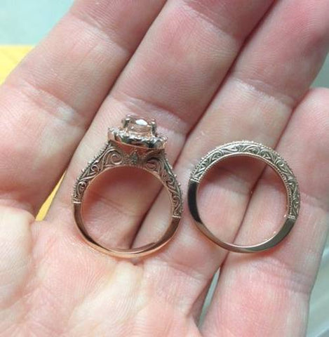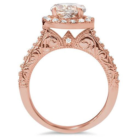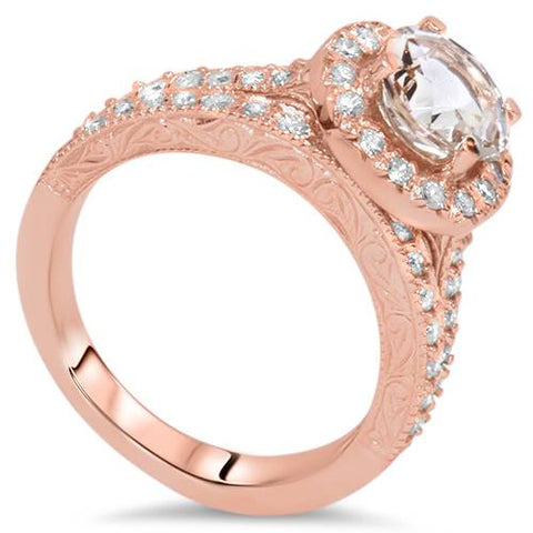 1 7/8CT Vintage Morganite & Diamond Engagement Wedding Ring Set 14K Rose Gold