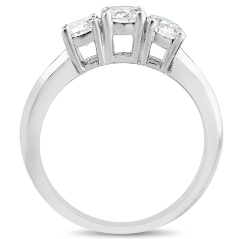 1 Carat 3-Stone Diamond Engagement Ring Solitaire Round Cut 14k White Gold