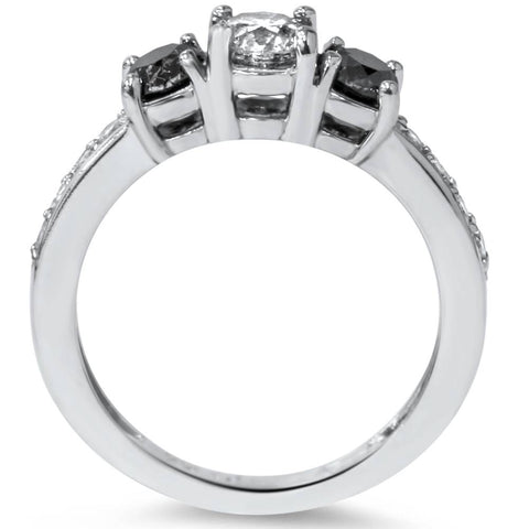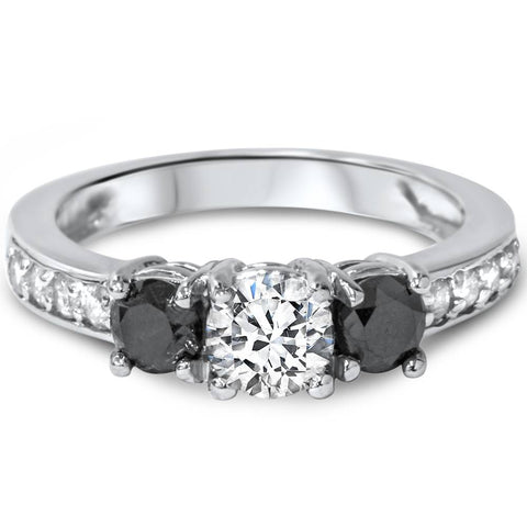 1ct Black & White Diamond 3 Stone Ring 14K White Gold