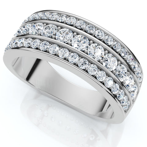 1 Ct Diamond Three Row Womens Anniversary Wide Wedding Ring 10k White Gold