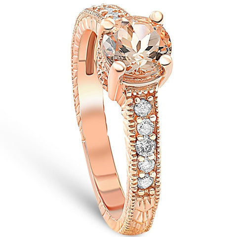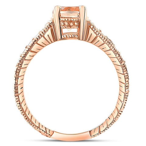 1 Ct Morganite & Diamond Vintage Engagement Ring in 14k Rose Gold
