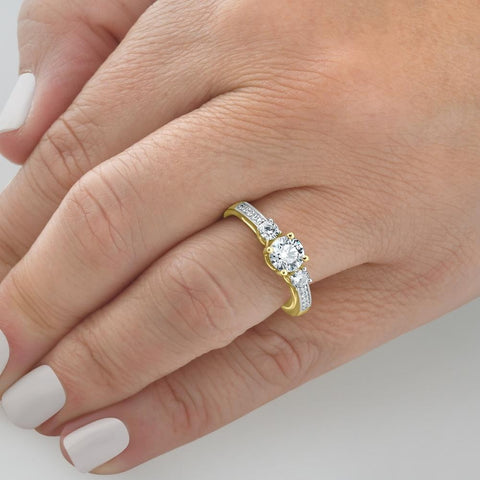 1 Ct T.W. Round Cut Three Stone Diamond Engagement Ring Lab Grown Gold