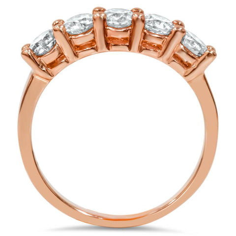 1 cttw 5-Stone Round Cut Diamond Wedding Anniversary Ring 14K Rose Gold