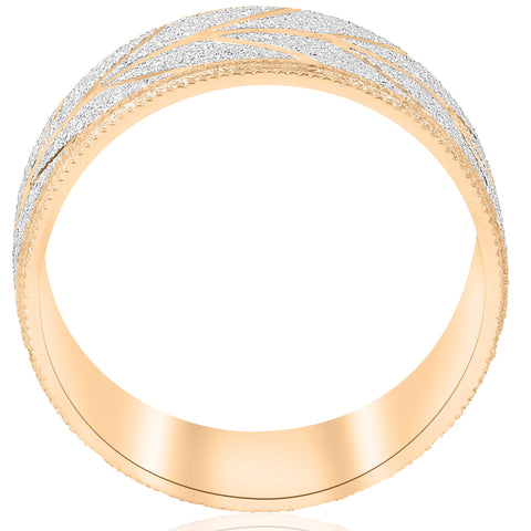 10k Gold Men's Comfort-Fit Wedding Band Stone Finish and Cuts 8MM Two Tone