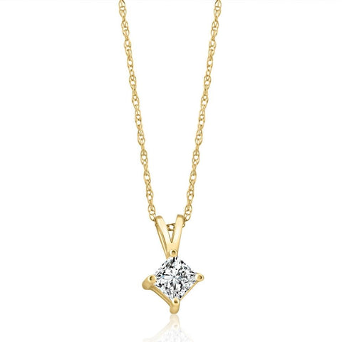 14k Gold Princess Cut 3/8ct Diamond Solitaire Pendant Enhanced