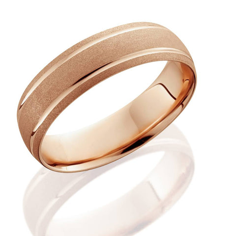 14K Rose Gold Mens Brushed Double Line Wedding Band 6mm Wide Ring