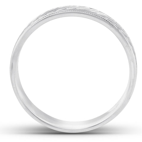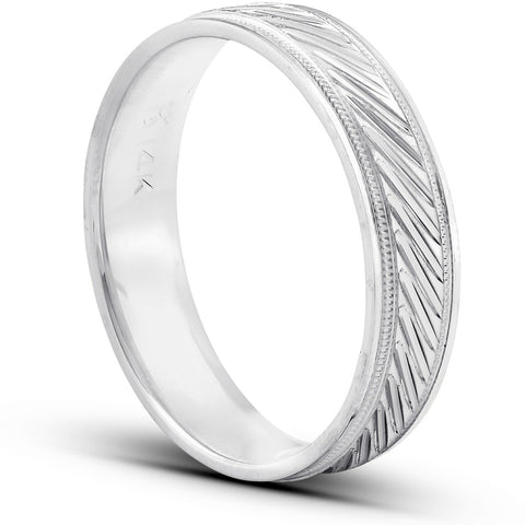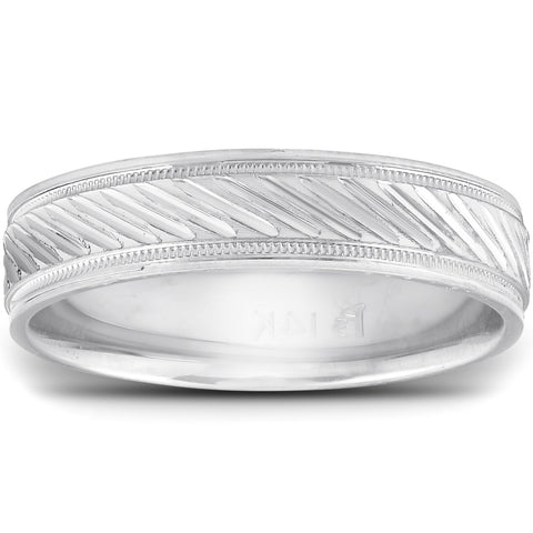 14k White Gold 5mm Flat Mens Hand Carved Wedding Band