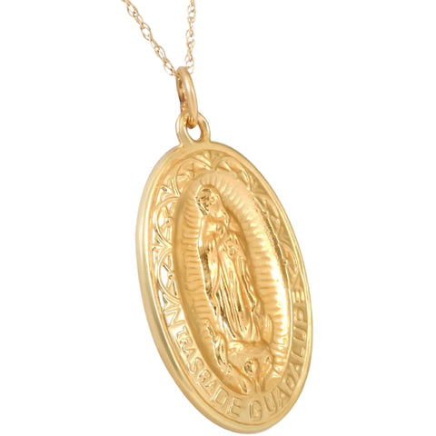 14k White or Yellow Gold Lady Of Guadalupe Medal Pendant 1" Tall 4 Grams