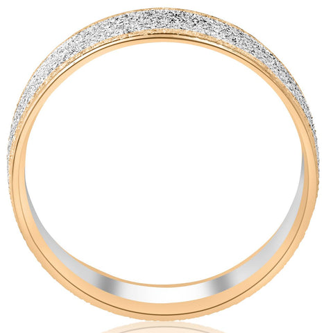 14k White & Yellow Gold Mens 6mm Two Tone Comfort Fit Texture Wedding Band