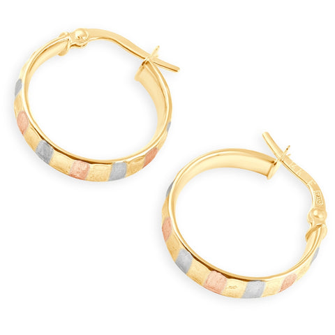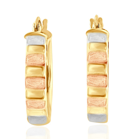 14k Yellow Gold 4mm Small Tri-Color Hoops Women's Earrings 3/4" Tall 1.35grams