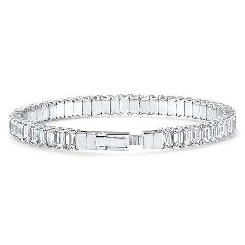 16Ct Emerald Diamond Tennis Flexible Bangle Bracelet 14k White Gold Lab Grown