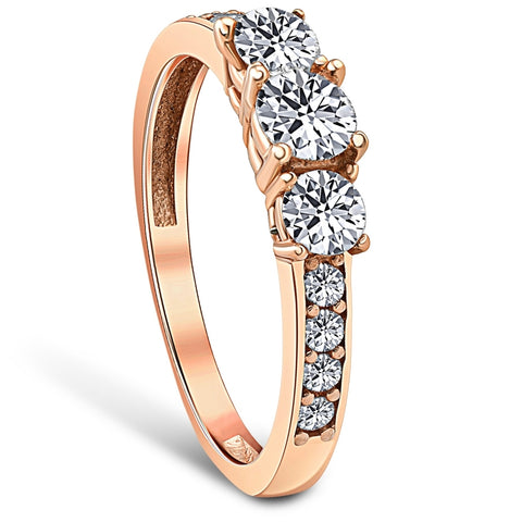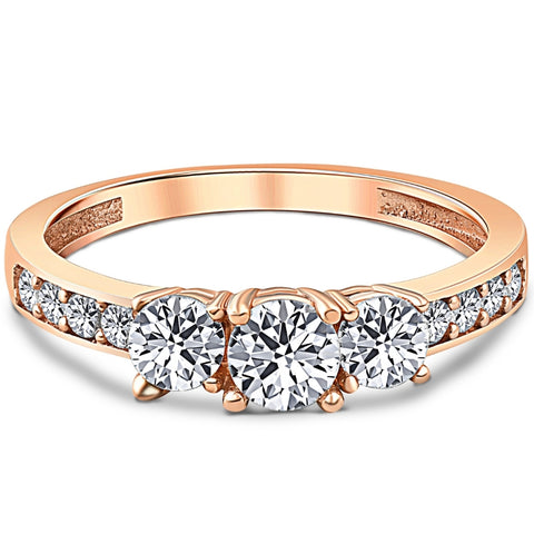 1ct 3 Stone Diamond Engagement Ring 14K Rose Gold