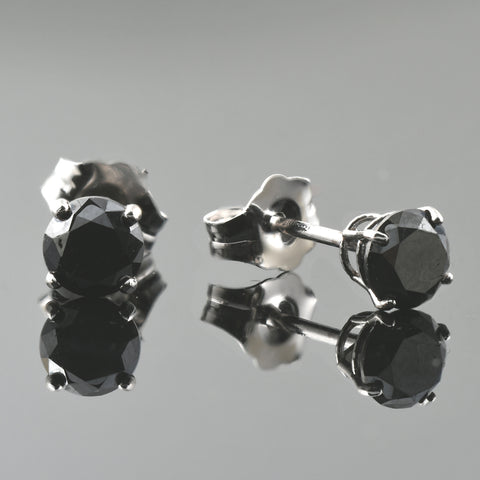 14k White Gold 1ct Round Cut Black Diamond Studs
