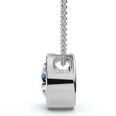 1Ct Certified Bezel Round Cut Diamond Pendant 14k Gold 18" Necklace Lab Grown