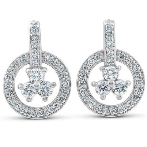 1ct Diamond Circle Three Stone Drop Dangle Earrings 14k White Gold