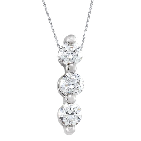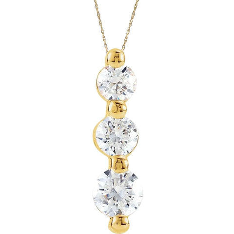 1Ct Diamond Necklace Three Stone Pendant in 10k White or Yellow Gold