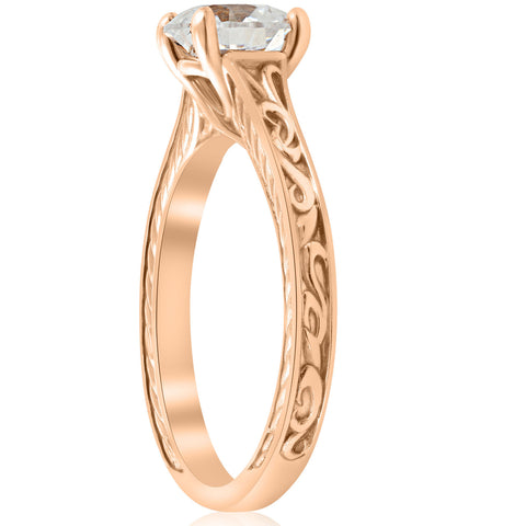 1ct Diamond Solitaire 14k Rose Gold Engagement Ring Art Deco Lab Grown