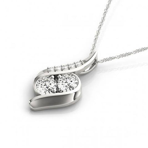 1ct Forever Us Two Stone Natural Diamond Pendant Necklace 18" 10K White Gold