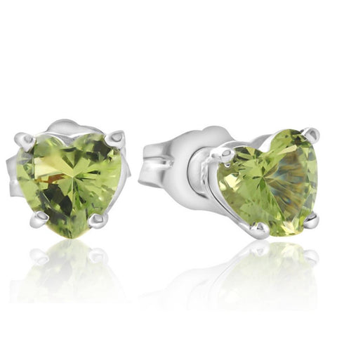 1ct Heart Shape Peridot Studs Solid 14K White Gold