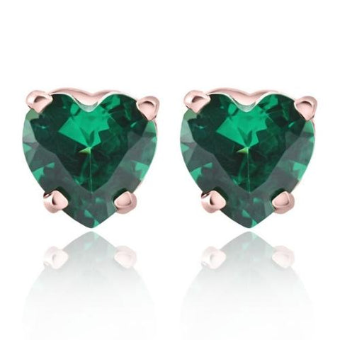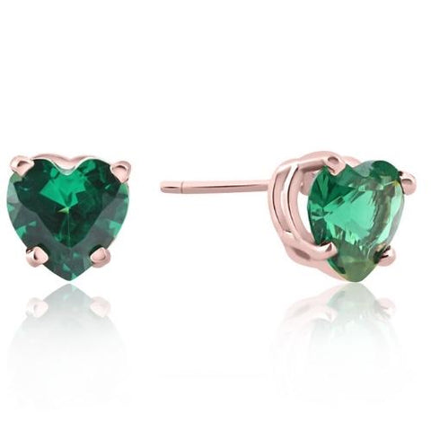 1Ct Emerald Heart Studs in 14k White, Yellow, or Rose Gold Earrings