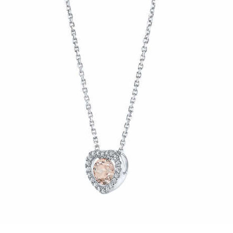 1Ct Morganite & Lab Grown Diamond Heart Pendant 14k White Gold Women's Necklace