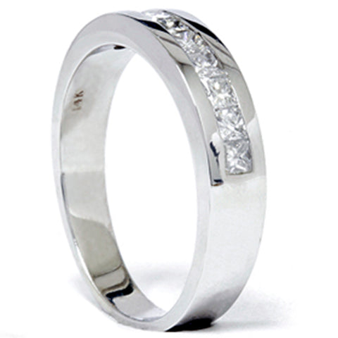 1ct Princess Cut Diamond Wedding Mens 14K White Gold Ring
