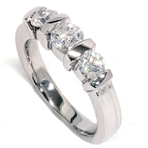 1 Cttw 3-Stone Natural Diamond Engagement Ring Bar Set 10K White Gold Band