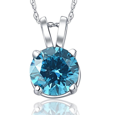 1 Ct Blue Diamond Solitaire Pendant 14K White Gold Lab Grown Necklace