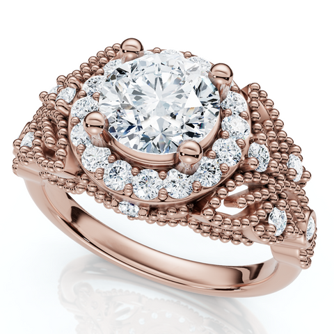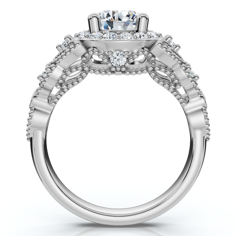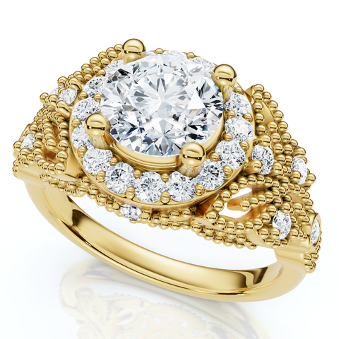 1Ct Vintage Accent Halo Diamond Engagement Ring 14k Gold or Platinum Lab Grown