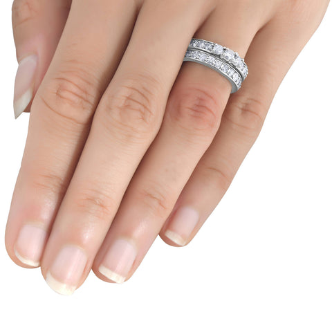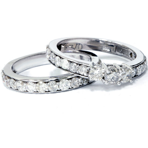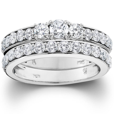 2 1/6ct 3-Stone Diamond Engagement Wedding Ring Set 10K White Gold