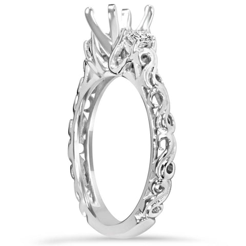 1/4CT Vintage Diamond Engagement Ring Setting 14K White Gold