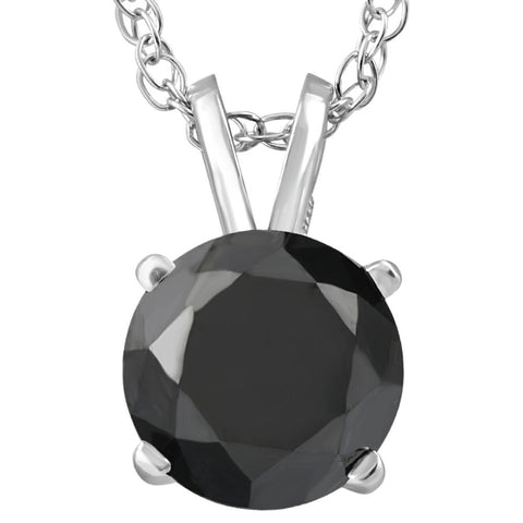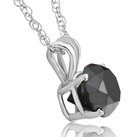 2 Ct Black Diamond Solitaire Pendant in 14k White or Yellow Gold 18" Necklace