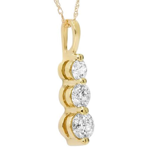 14k White or Yellow Gold Round-Cut Diamond Three Stone Pendant 2cttw Necklace