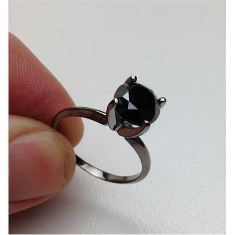 8MM Black Spinel Solitaire Round Engagement Ring 14k White Gold