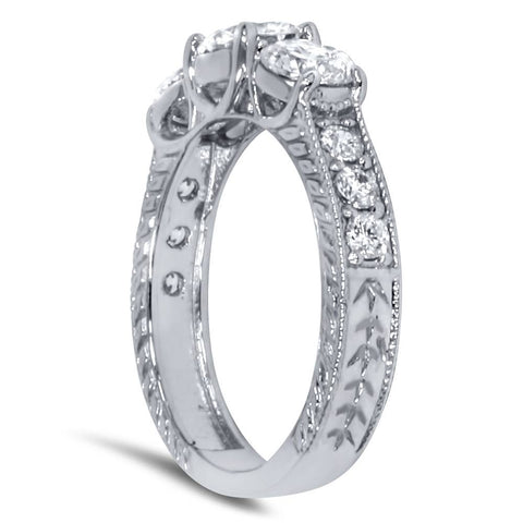 2ct Vintage Three Stone Round Diamond Engagement Ring 14K White Gold