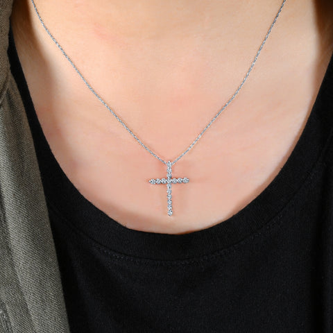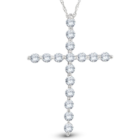 5/8 Ct Diamond Cross Pendant Necklace 18" 10k White Gold 1" Tall