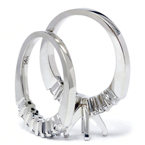 This classic bridal set features both the semi engagement and matching wedding ring. All 18 round brilliant cut natural diamonds are prong set in 14k white gold. .80ct total diamond weight. We can supply this mount for all shapes up to 2.00ct. Larger sizes are available, email us for a quote.