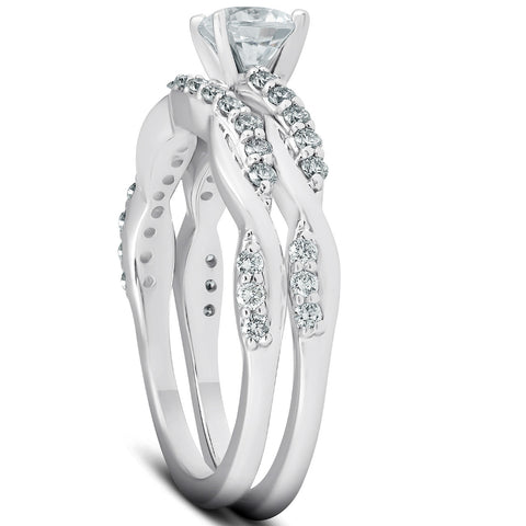 3/4Ct Diamond Infinity Engagement Ring Set 14k White Gold Maching Woven Band