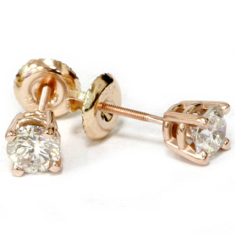 3/4 cttw Diamond Studs 14k Rose Gold Screw Back Studs