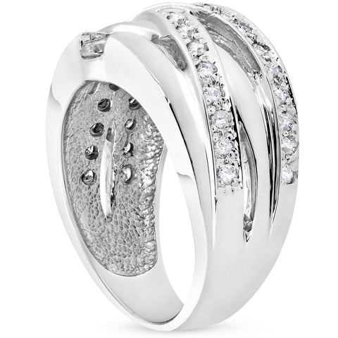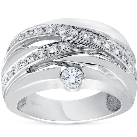 3/4 ct Diamond Womens Wide Solitaire Right Hand Ring 14k White Gold Multirow