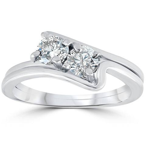 3/4CT Two Stone Diamond Forever Us Engagement Ring Set 10K White Gold