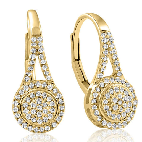 3/8Ct Halo Diamond Hoops With Lever Backs in White or Yellow Gold 18mm Tall